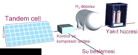 Tandem cells'e gelen güneş ışınları burada bulunan suyu (H2O) ayrıştırarak hidrojen (H2) ve oksijen (O2) elde edilir. Plakaların fazlalaştırılması ile elektron daha fazla yol kat edeceği için verimi de artar.