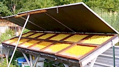 ![]() | 1) Güneş kollektörlü ısıl kutu: Üzerinde güneş enerjisini soğuracak bir kollektör bulunan kurutma kutuları. |